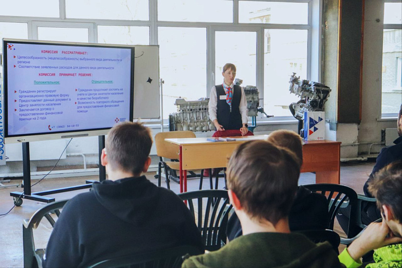 Специалисты Кадрового центра «Работа России» провели встречу с выпускниками Кемеровского профессионально-технического техникума по вопросам трудоустройства