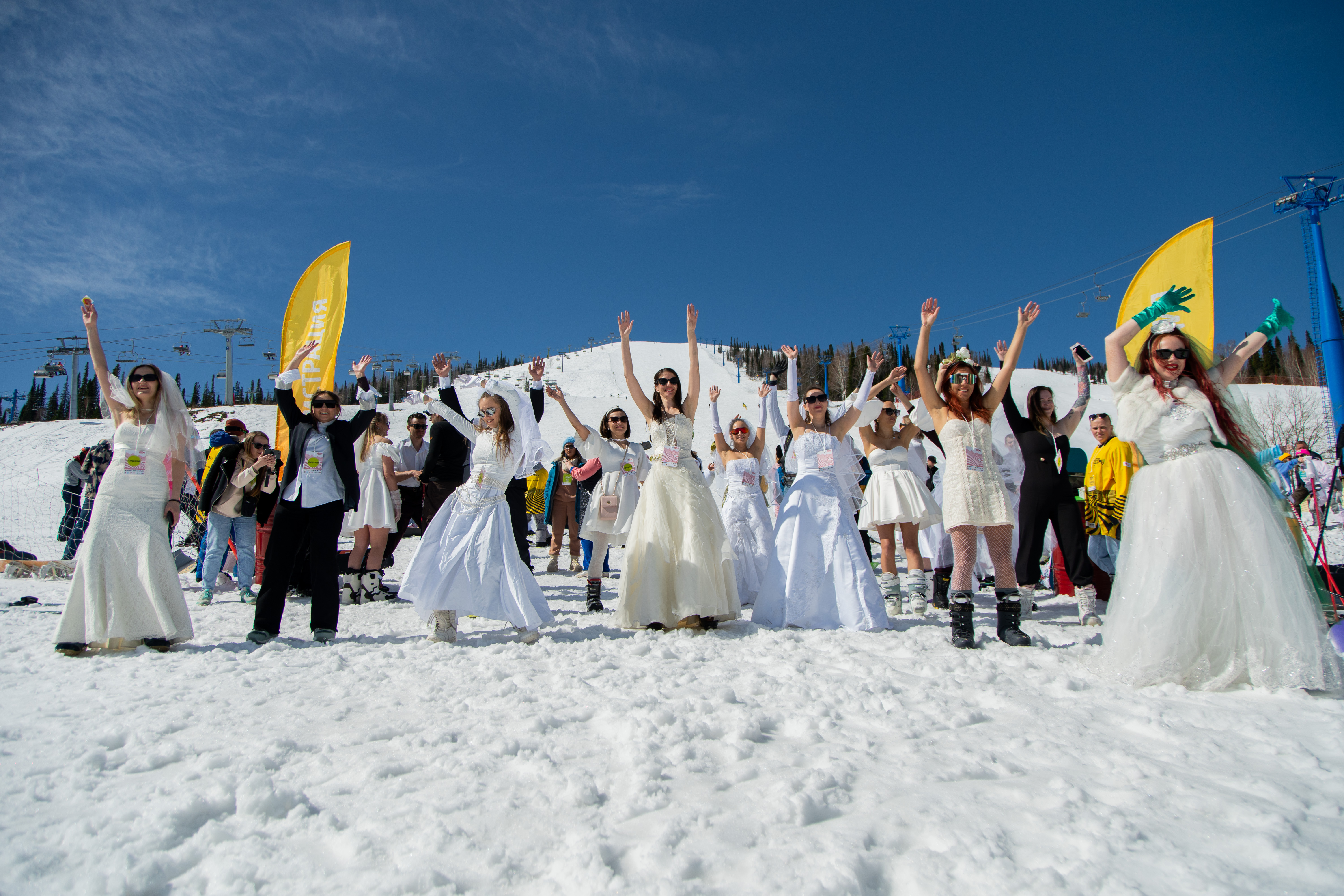 В спортивно-туристическом комплексе «Шерегеш» в рамках фестиваля «ГрелкаФест» состоялся «Свадебный спуск».