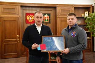 Губернатор Кузбасса Илья Середюк встретился с российским космонавтом-испытателем, уроженцем Мысков Александром Гребенкиным