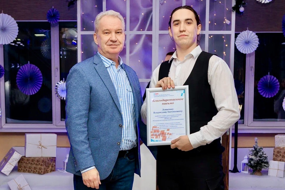 Председатель Общественной палаты Кузбасса Владислав Овчинников вместе с ректором университета Александром Просековым и депутатом Парламента Кузбасса, проректором по молодежной политике КемГУ Марией Леуховой вручили благодарственные письма региональной Общественной палаты студентам-активистам.
