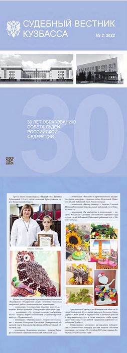 Опубликован очередной, специальный выпуск журнала судейского сообщества Кемеровской области «Судебный вестник Кузбасса» № 3 за 2022 год