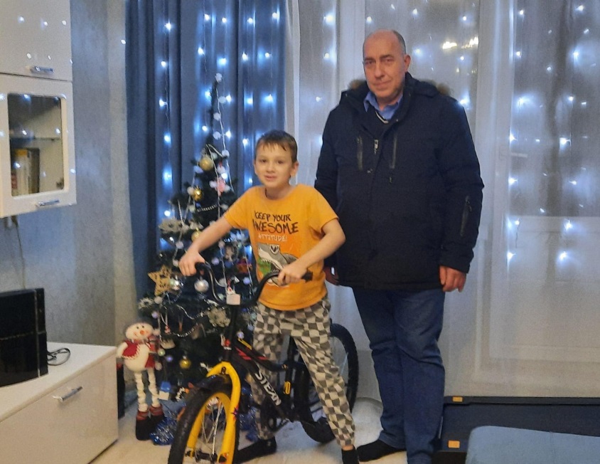 Он исполнил мечту восьмилетнего Константина Овчинникова из Томска, лично вручив мальчику велосипед.