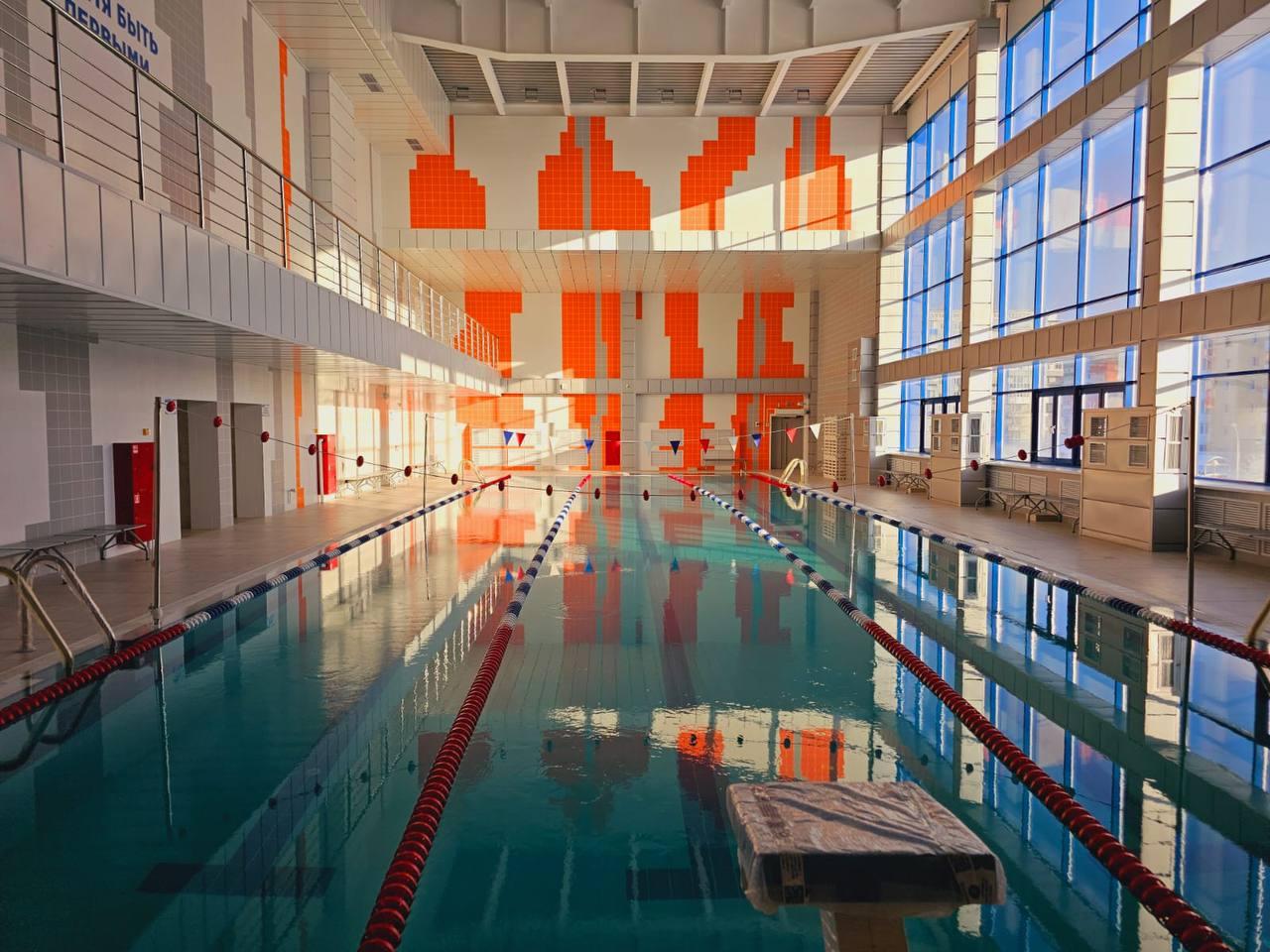 На первом этаже комплекса расположены входная группа, буфет, тренажерный зал с раздевалками и вспомогательные помещения. На втором этаже — бассейн на 40 человек с чашей 25х8,5 метров. Здесь же находятся удобные раздевалки, душевые, медицинские кабинеты, которые функционально связаны с бассейном.