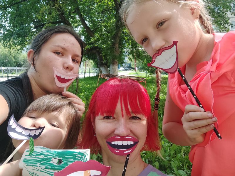 3 августа на площадке у Баяновки прошёл Библиотечный четверг «От улыбки станет всем светлей». Любой желающий мог подойти к нашему импровизированному читальному залу на траве, отдохнуть в креслах-мешках, поиграть в подвижные игры, а также сфотографироваться с весёлой поделкой-улыбкой.