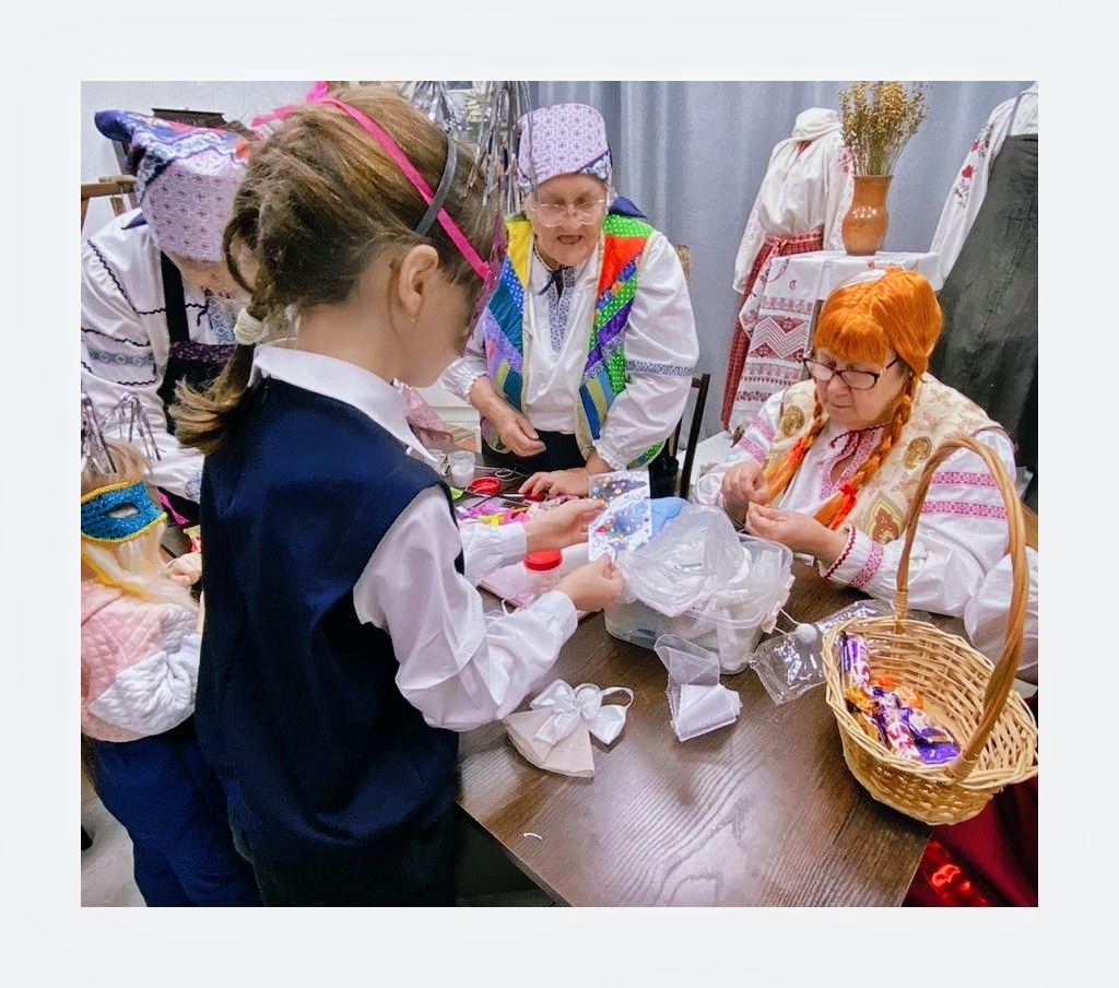 5 января 2023 года в городском краеведческом музее для детей из семей военнослужащих – участников СВО прошла интерактивная программа «Колядуют все!» Юных гостей и их родителей научные сотрудники музея познакомили с русскими народными традициями встречи Нового года и Рождества, рассказали, кто такой Коляда. Участники программы примерили яркие, забавные маски, и, разучив веселую, шуточную колядку, смогли поучаствовать в настоящем обряде колядования. Колядующие отправились в гости к мастерицам музейной арт-площадки «Жихарка», которые встретили их с добрыми пожеланиями и подарили щедрым сладким угощением. Но мастерицы порадовали гостей не только сладостями. Накануне Рождества Жихарки предложили ребятам научиться мастерить Рождественского Ангела – теплый и добрый символ Рождества. Мастерицы показали разные техники изготовления, и каждый участник программы смог смастерить своего Ангелочка в подарок близким, в пожелание им любви, счастья и доброты. В конце программы ребят пригласили на праздничное чаепитие из настоящего угольного самовара – с пирогами, блинами и сладостями, которые участники программы наколядовали сами!