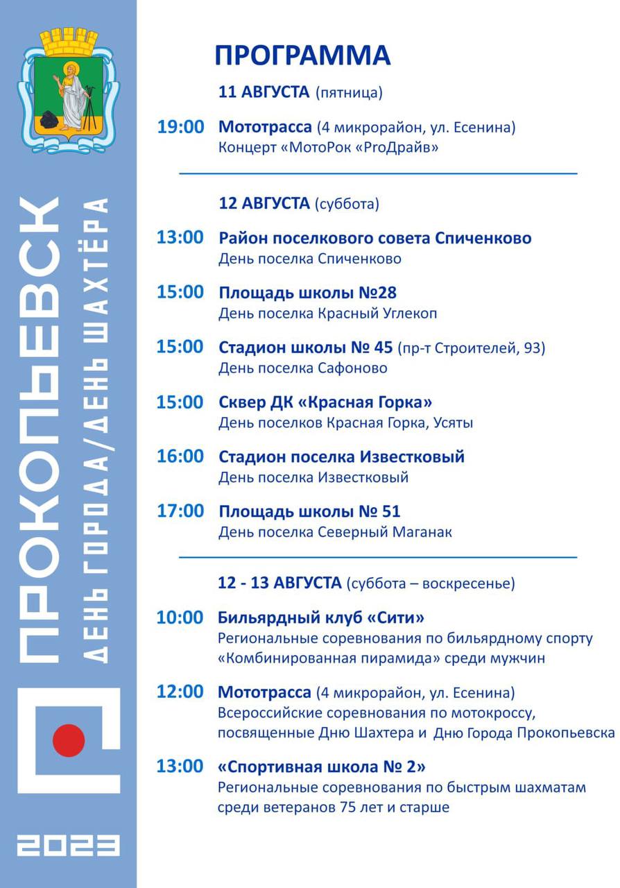 Программа праздничных мероприятий, посвящённых Дню города и Дню шахтёра- 2023