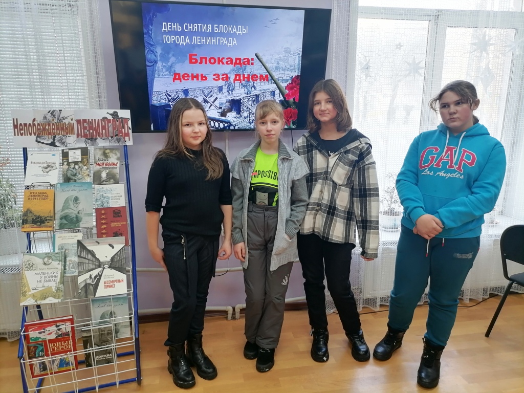 В заключение мероприятия библиотекарь познакомила учащихся с книгами: Громова О. «Сахарный ребёнок», Сухачёв М. «Там за чертой Блокады», Фонакова Э. «Хлеб той зимы». В книгах авторы пытались передать атмосферу и жизнь обычных семей, не покинувших город. Тема героической обороны Ленинграда актуальна и в наши дни, как и сохранение памяти о тех, кто отдал свою жизнь за город и за нашу Родину.
