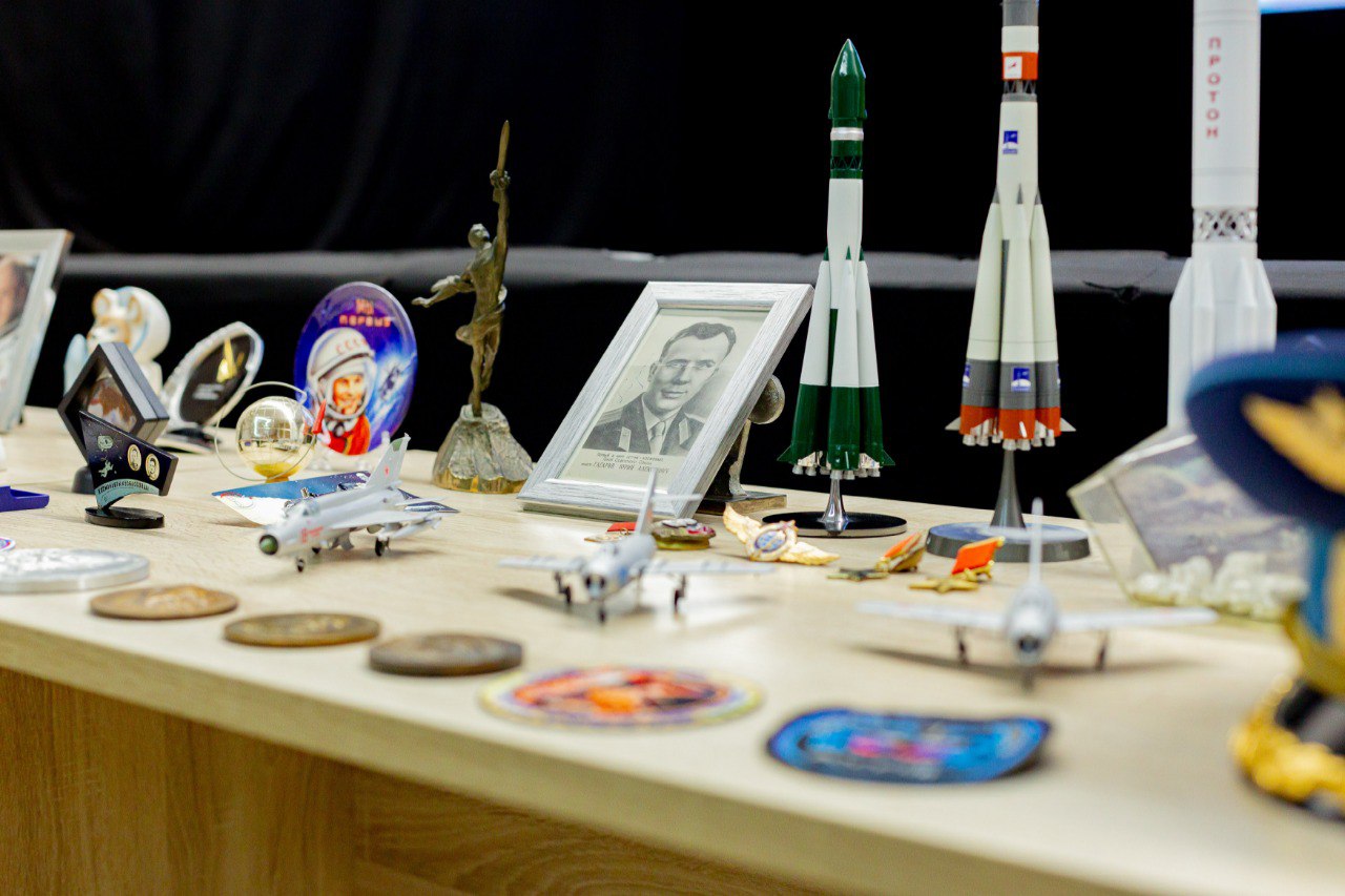 Также в вузе работала выставка артефактов, посвященных космосу, в частности были представлены образцы рациона питания космонавтов.