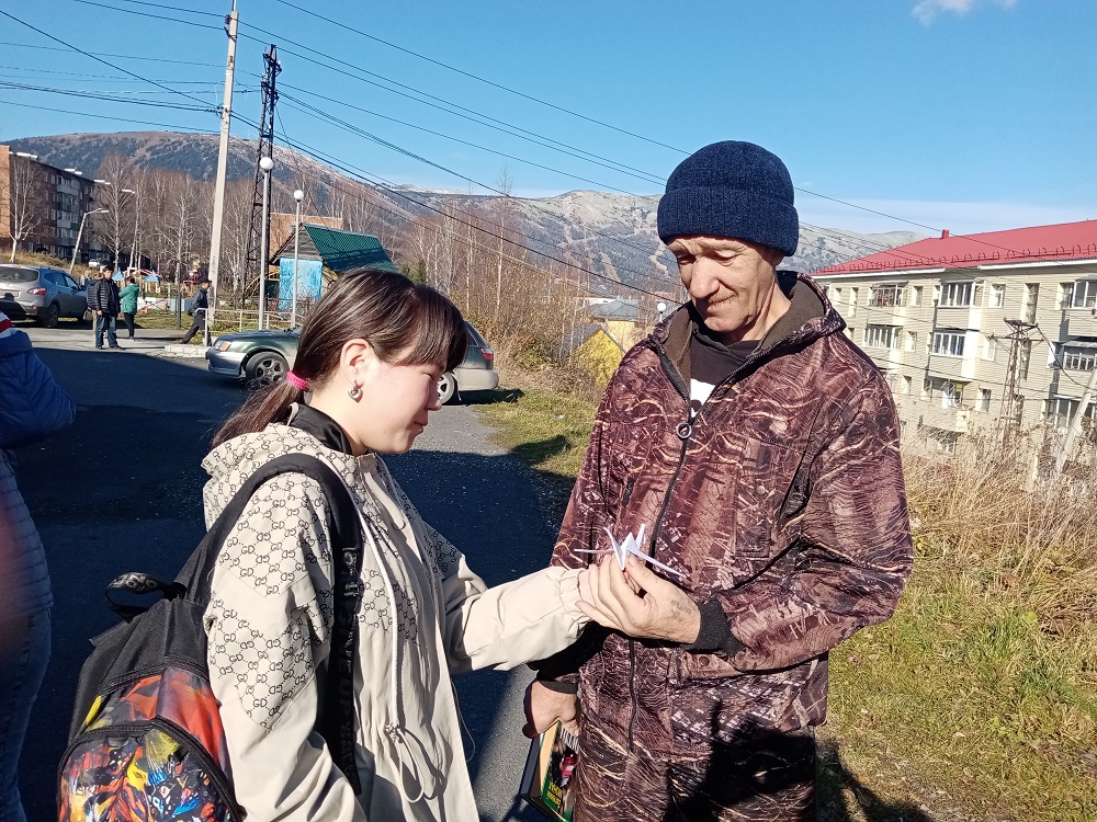 Ребята приняли участие в мастер — классе по изготовлению белых журавлей в технике оригами. В рамках традиции праздника ребята провели акцию «Летите, журавли летите». Бумажные птицы как символ мира, долголетия и надежды долетели до жителей поселка Шерегеш.