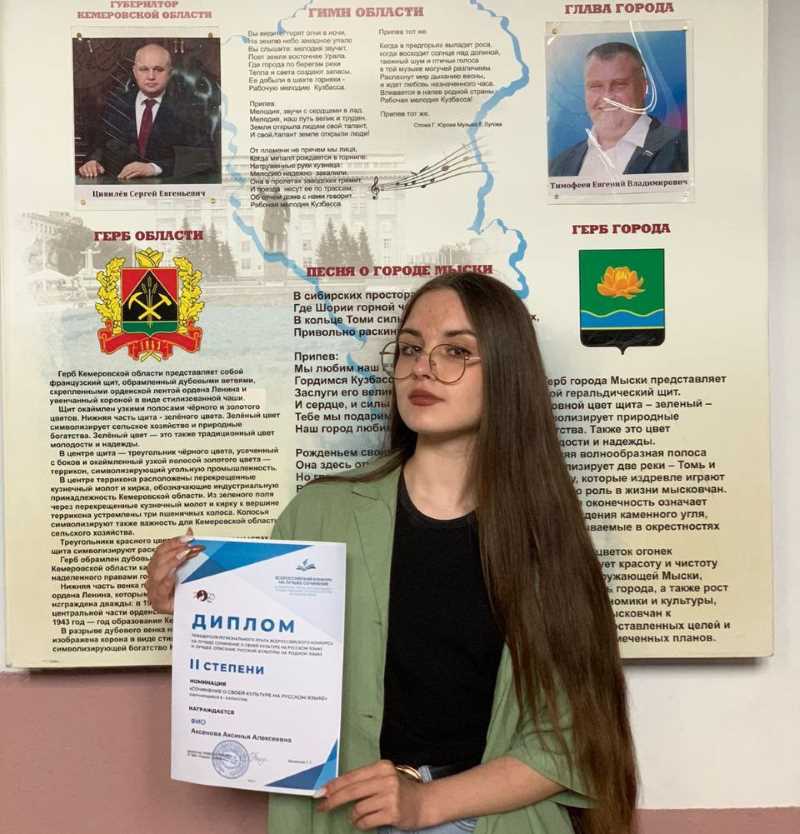 Мысковчанка Аксинья Аксёнова стала победительницей регионального этапа Всероссийского конкурса на лучшее сочинение о своей культуре