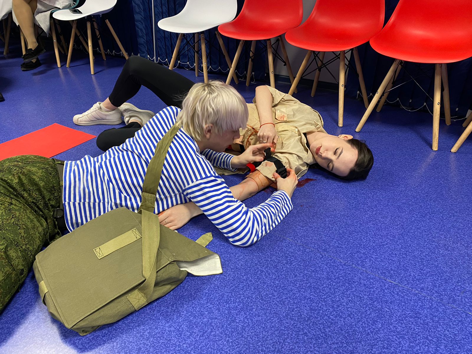 В ходе практических занятий, которые проходили в формате симуляционного тренинга, обучающиеся осваивали приёмы и способы оказания первой помощи в разных тактических зонах на территории боевых действий, успешно продемонстрировали разные приемы и способы наложения артериального жгута при кровотечениях, способы транспортировки раненых с поля боя, умение пользоваться тактическими носилками, оказывать первую помощь по протоколу К.У.Л.А.К. Б.И.Т.А., заполнять карточку раненого, готовить раненых к эвакуации в госпиталь. Подготовка включала в себя и получение навыков оказания первой помощи в темное время суток. Ребята оказывали помощь в неосвещаемом помещении с плотно закрытыми окнами, используя лишь фонарики.
