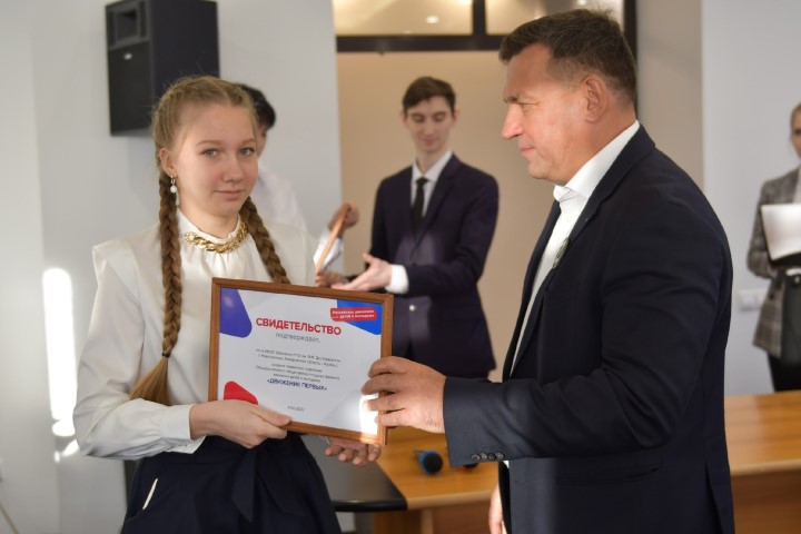 Школьники поделились выбранными направлениями работы в рамках РДДМ. Глава города вручил ребятам свидетельства, подтверждающие открытие первичных отделений.