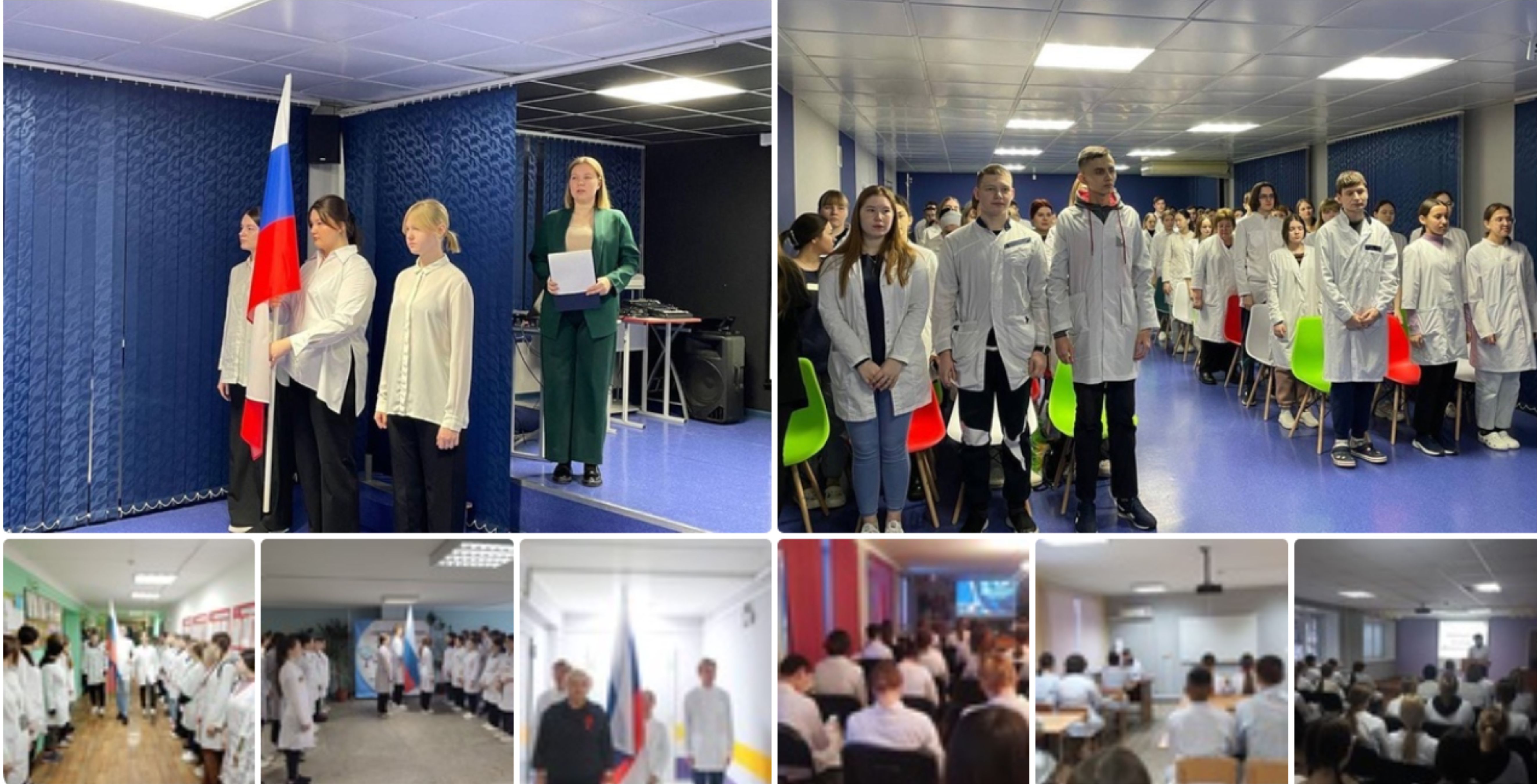 30 января в Кузбасском медицинском колледже состоялась церемония выноса флага Российской Федерации и исполнения гимна страны, а также очередное занятие для первокурсников в рамках проекта «Разговоры о важном».