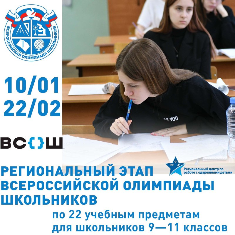 10 января 2023 года стартовал региональный этап Всероссийской олимпиады школьников.