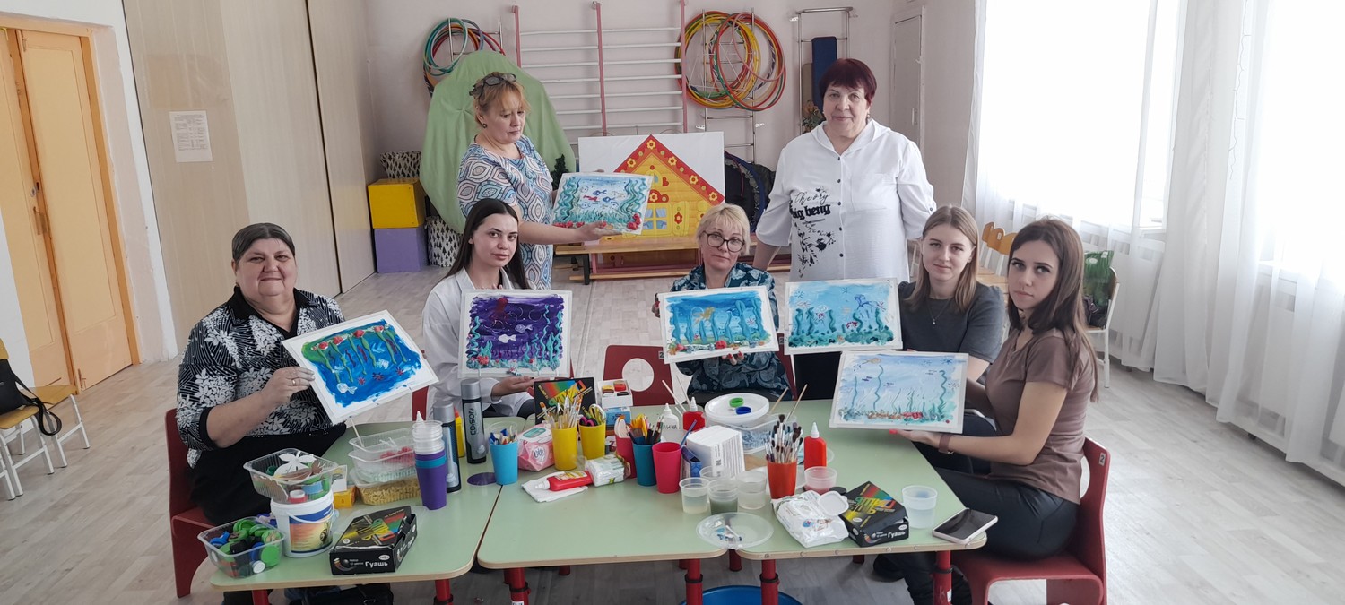 29 марта 2023 года на базе детского сада №7 под руководством старшего воспитателя Иваньковой Екатерины Викторовны проведено занятие Школы молодого педагога по теме «Изобразительная деятельность - Нетрадиционные техники рисования».