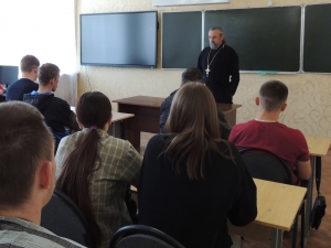 В рамках программы противодействия экстремизму и терроризму среди молодежи, со студентами Тяжинского агропромышленного техникума встретился настоятель храма Преображения Господня поселка Тяжинский, протоиерей Василий Страдомский.