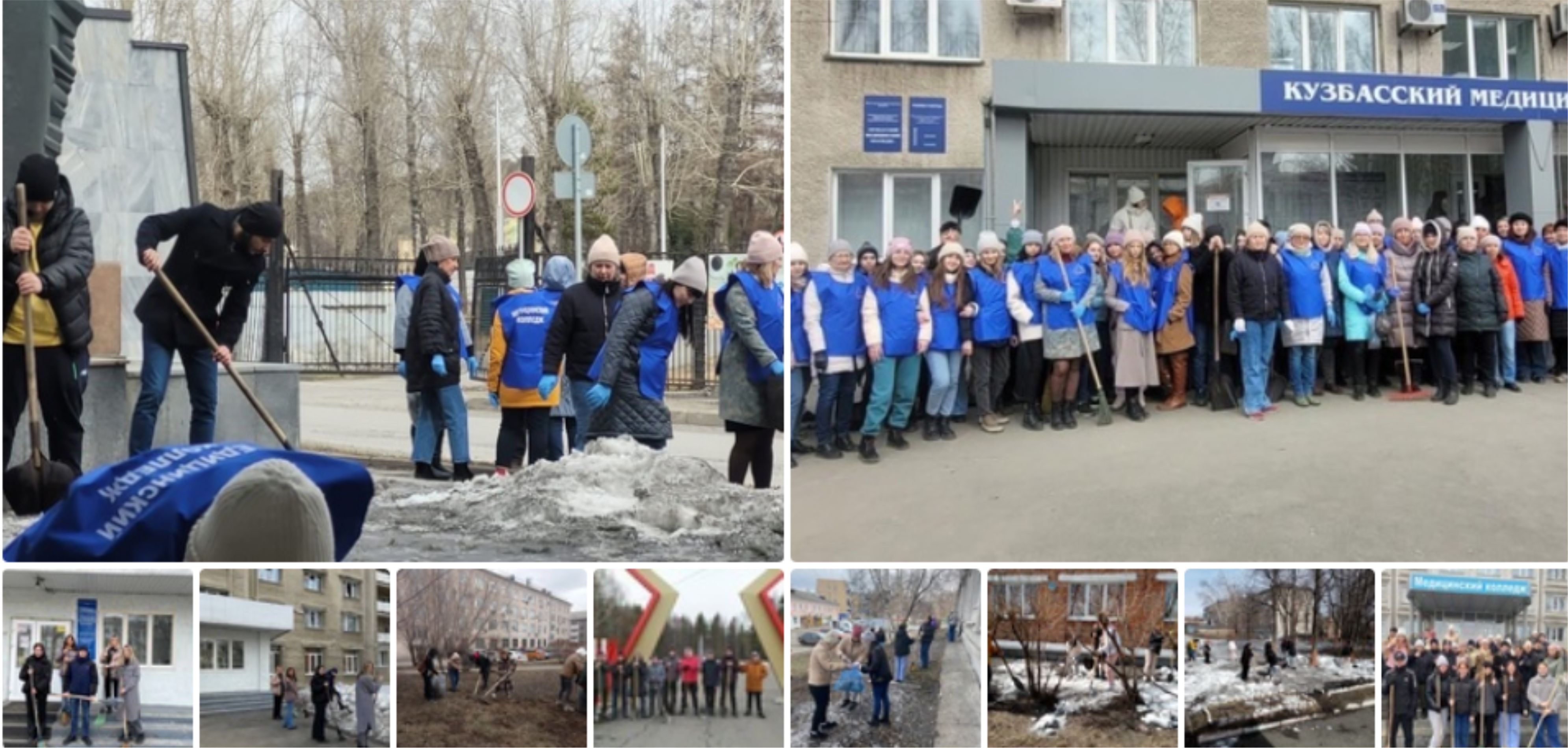 13 апреля сотрудники и студенты ГБПОУ «Кузбасский медицинский колледж» и его филиалов в Анжеро-Судженском, Белове, Ленинске-Кузнецком, Новокузнецке и Прокопьевске вышли на очередной субботник.