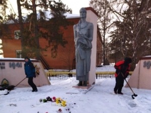 Волонтеры Тяжинского агропромышленного техникума очищают от снега мемориалы