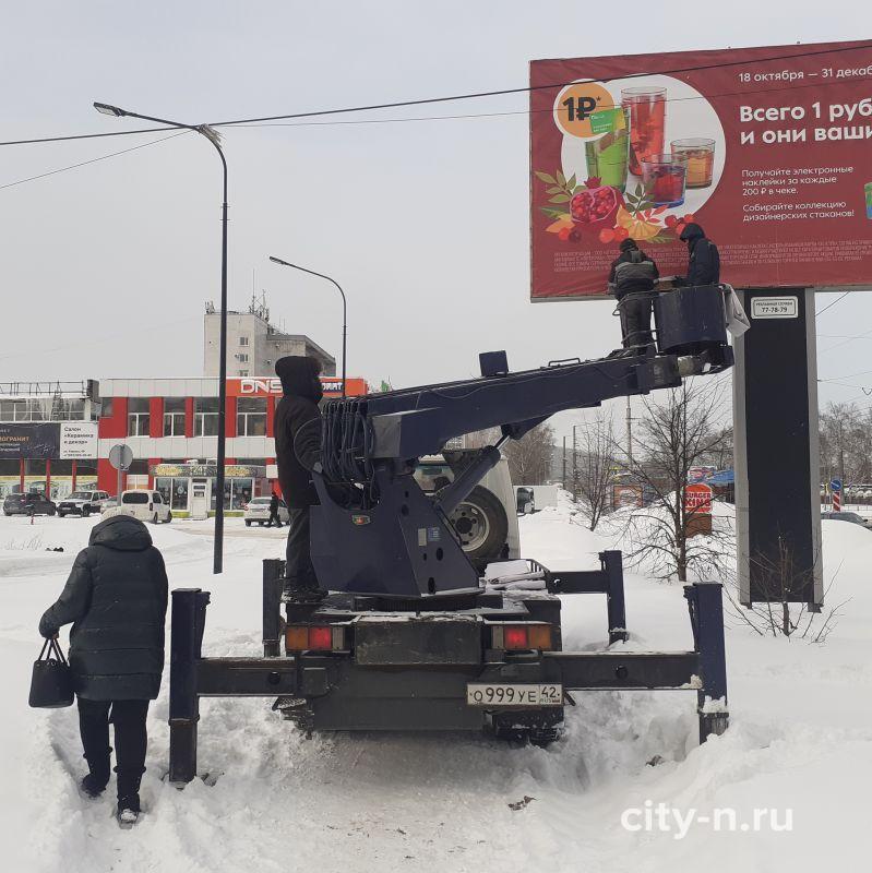 «Ситуация произошла 20.01.2023 в районе Крытого рынка. Все пешеходные дорожки и так засыпаны снегом и никак не чистятся (отдельный привет администрации Куйбышевского района), так ещё и на эту нечищенную пешеходную дорожку заехала бригада монтажников рекламного агентства, перегородив её полностью, и монтирует себе баннер.