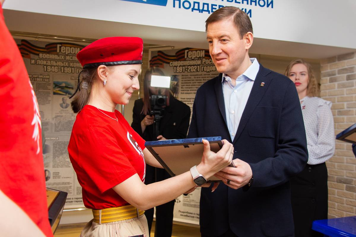 Встреча прошла в кузбасском Штабе общественной поддержки партии. Школьники получили из рук Секретаря Генсовета «Единой России» Андрея Турчака и губернатора Кузбасса, члена Бюро Высшего совета партии Сергея Цивилева диплом победителя второй степени конкурса «Лучший школьный цифровой музей» в СФО и призовой сертификат на приобретение техники и оборудования.