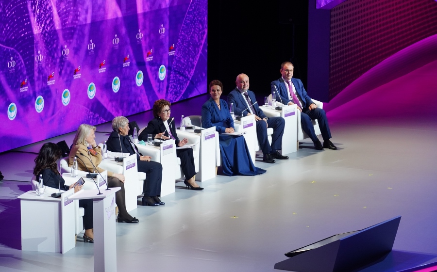 На пленарном заседании выступили доктор наук по международным отношениям и дипломатии Центра дипломатических и стратегических исследований (Франция) Луна Аббади из Иордании, а также Герой Труда Российской Федерации, машинист крана доменного цеха Людмила Суслякова.