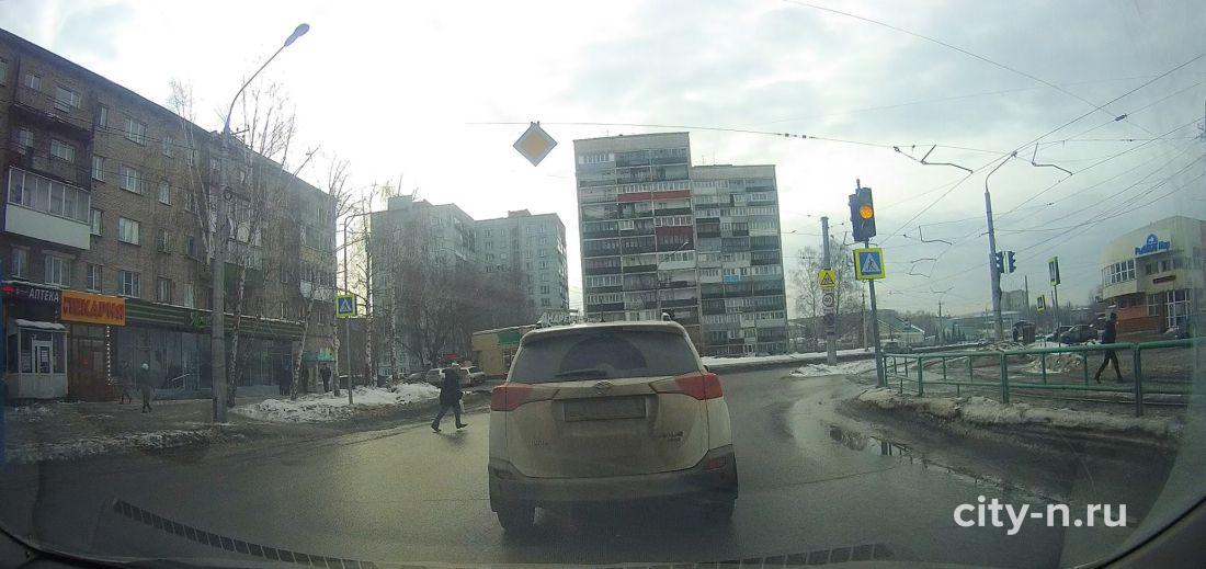 Несколько странных манёвров водителей попали на видео. Сначала на перекрёстке пр. Дружбы и ул. Кузнецова кроссовер с госномером Е 010ЕА 142 раньше времени — на жёлтый сигнал светофора — стартанул и чуть не задавил пешехода, перебегавшего дорогу.