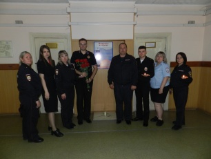 Сотрудники полиции зажгли свечи у мемориальной доски, установленной в центре холла, на которой вписаны имена старшего лейтенанта полиции Альфреда Пфетцера, старшего лейтенанта милиции Александра Колмогорова, старшины милиции Александра Филонова, погибших при исполнении служебных обязанностей на родной земле и в горячих точках.