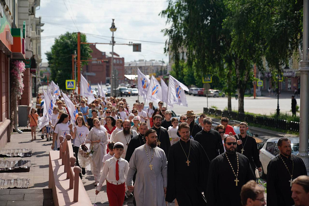 Как и в других городах, в Кемерове мероприятие началось с молебна Петру и Февронии Муромским, покровителям семьи. После благословения бабушки, дедушки, мамы, папы, дети проследовали по центральной улице города. Колонну украсили тематической атрибутикой. В месте финиша - Парке Чудес - началась праздничная программа.