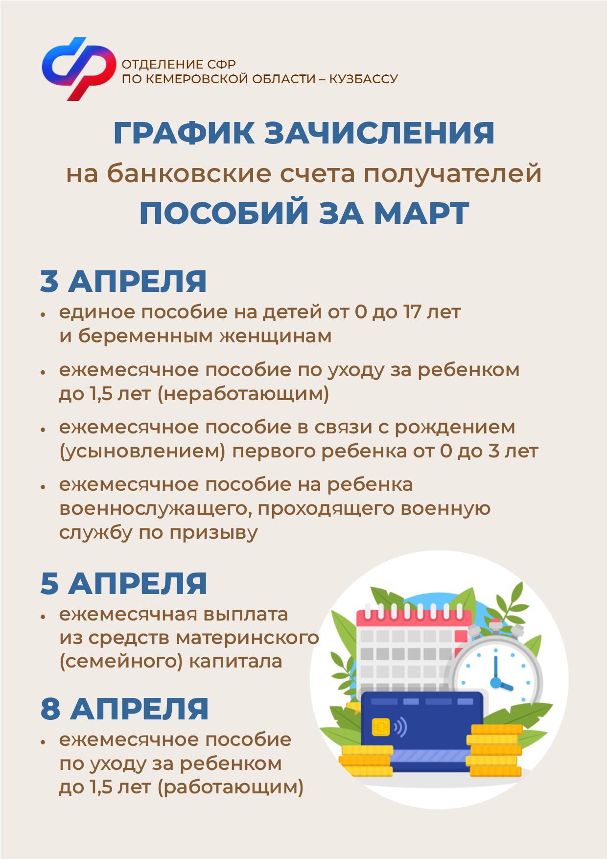 График зачисления пособий за март