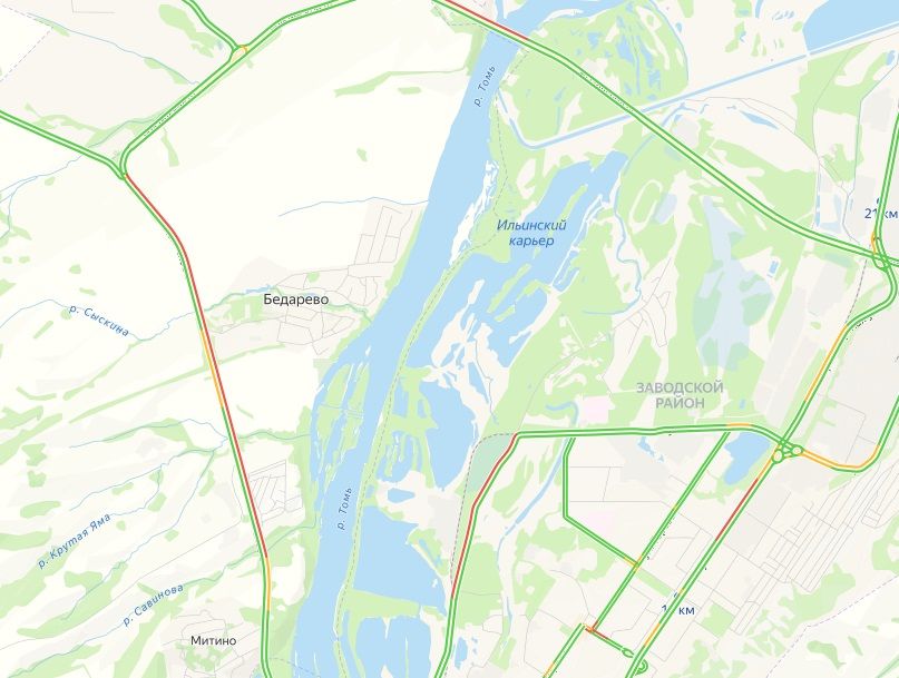 Масштаб проблемы видно на карте сервиса Яндекс.Пробки. На ильинской трассе одна большая пробка от Митино до поворота на посёлок Металлургов.
