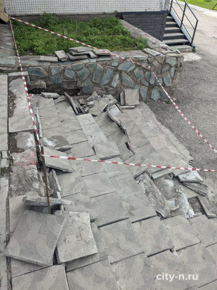 «На следующий день после вашей публикации появилось ограждение у сломанного крыльца , - пишет автор фото и видео Егор. - У же работает бригада».