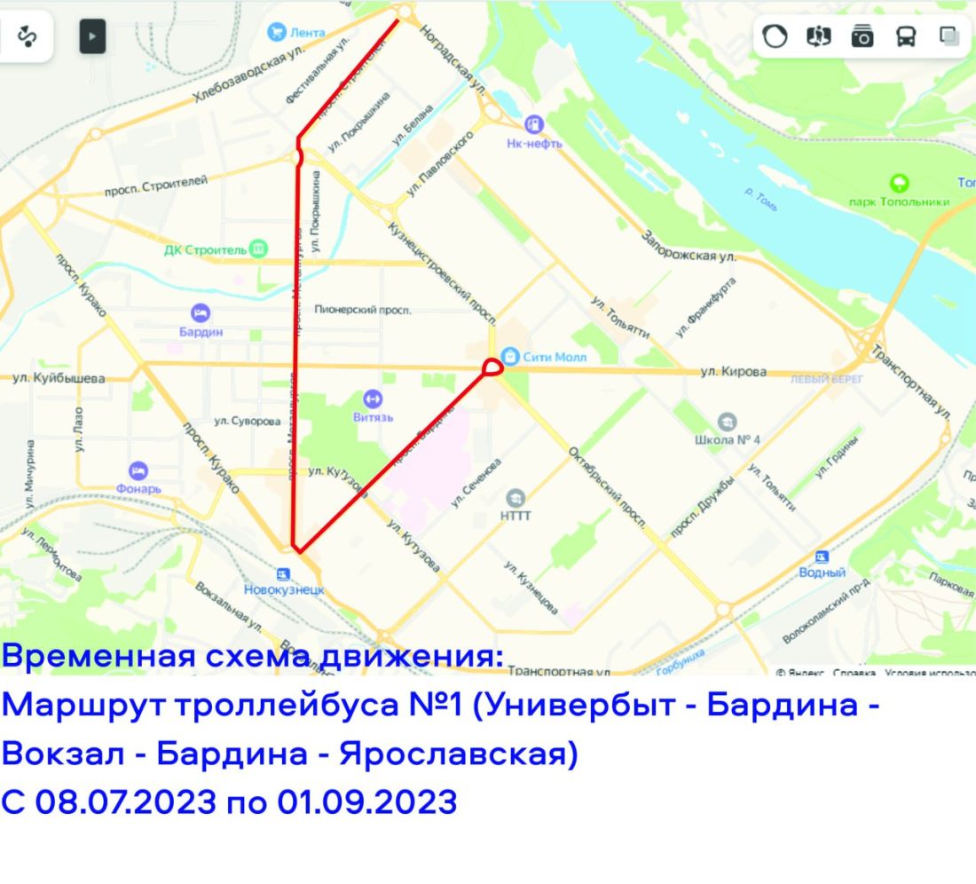 В связи со сложной дорожной обстановкой, с целью обеспечения безопасности пассажиров при совершении манёвра на транспортной развязке у Привокзальной площади принято решение о продлении временной схемы движения троллейбусного маршрута №1 (Ярославская – Вокзал) до остановочного пункта «Универбыт». Об этом сообщили транспортники в телеграм-канале Общественный транспорт Новокузнецка.
