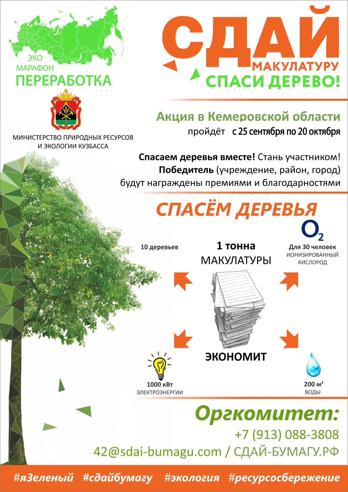 С 25 сентября города и районы начали соревнование за первые места в «зелёном рейтинге». Стартовал Всероссийский эко-марафон «ПЕРЕРАБОТКА: «Сдай макулатуру – спаси дерево».
