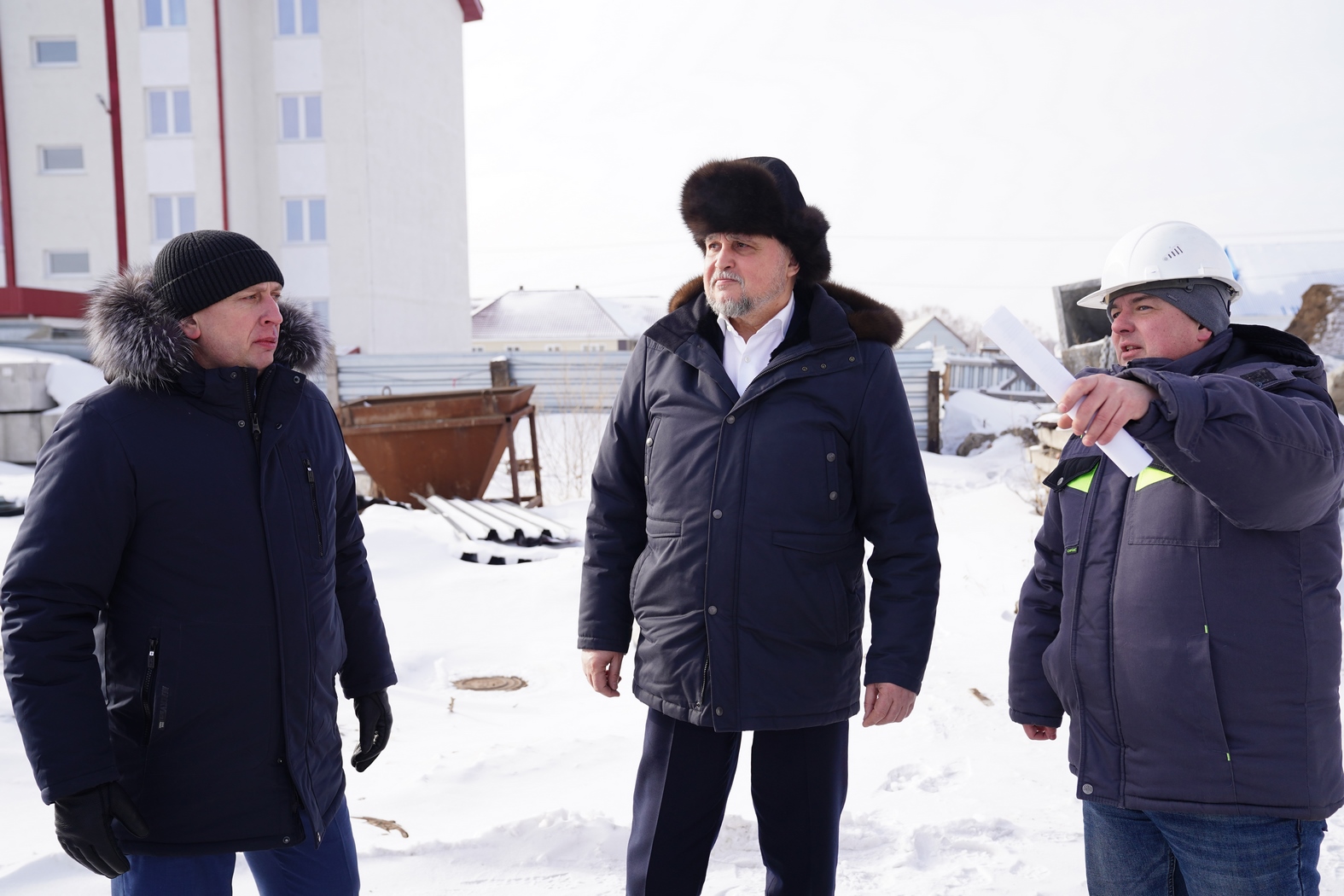 В ходе рабочей поездки в Тяжинский округ губернатор КуZбасса Сергей Цивилев и глава муниципалитета Виктор Серебров обсудили итоги работы в прошлом году и планы на юбилейный 2024-й — в сентябре округу исполнится 100 лет. Одним из событий года станет сдача многоквартирного дома в пгт Тяжинский. Глава региона осмотрел строящийся объект и дом, сданный в конце 2023-го.