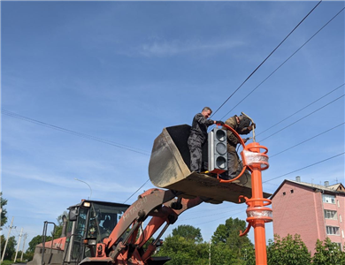 Специалисты службы жизнеобеспечения в преддверии начала учебного года устанавливают дополнительный светофор на улице Кубанской.