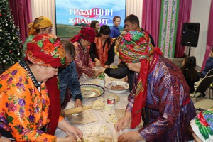 Все желающие могли присоединиться к обычаю лепить главный атрибут праздника в клубе Телеут. Гостям рассказали, что пельмени в форме полумесяца в этот день вручную готовят в каждой семье, при этом обязательно надевают национальные платья и поют обрядовые песни. В некоторые пельмени закладывают монетки разного номинала, загадывают на них желания, запоминают, а во время застолья проверяют: сбудется или нет. Кстати, по традиции в этот день важно забыть о диетах и съесть как можно больше пельменей, чтобы весь год был удачным и счастливым.