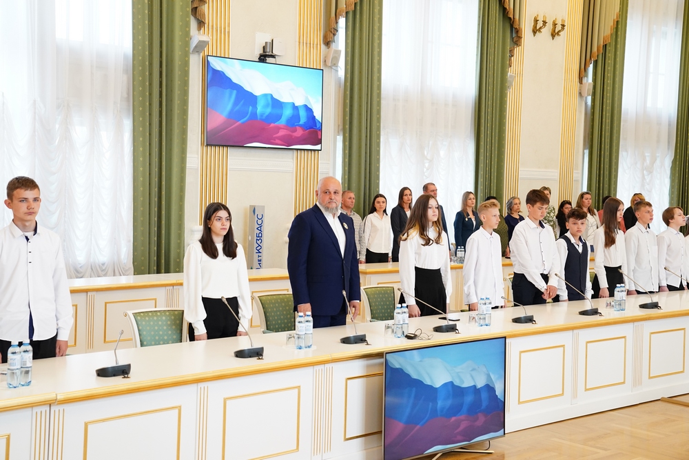 На торжественном приеме в администрации правительства КуZбасса первый взрослый документ гражданина Российской Федерации отличникам, активистам, спортсменам,