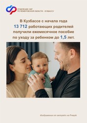 С начала года Отделение СФР по Кемеровской области – Кузбассу произвело 13712 работающим родителям 46639 выплат ежемесячных пособий по уходу за ребенком до 1,5 лет.