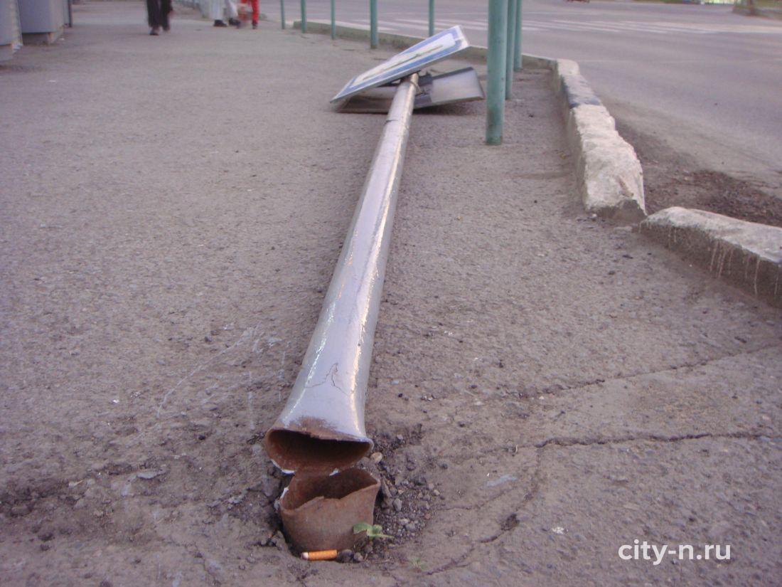В Новокузнецке на остановке «Океан» что-то случилось со знаком «Автобусная остановка». В воскресенье вечером он лежал поваленный на землю. Труба, на которую он крепился, оказалась сплюснута и переломлена у самого низа.