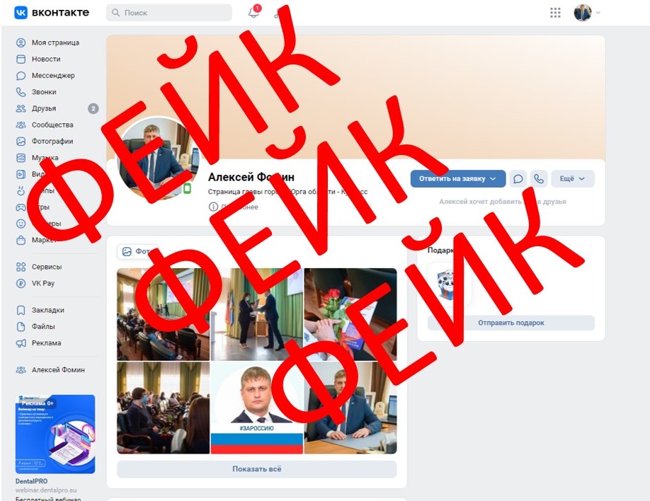 Уважаемые юргинцы, в социальной сети ВКонтакте появилась фейковая страница Алексея Фомина.