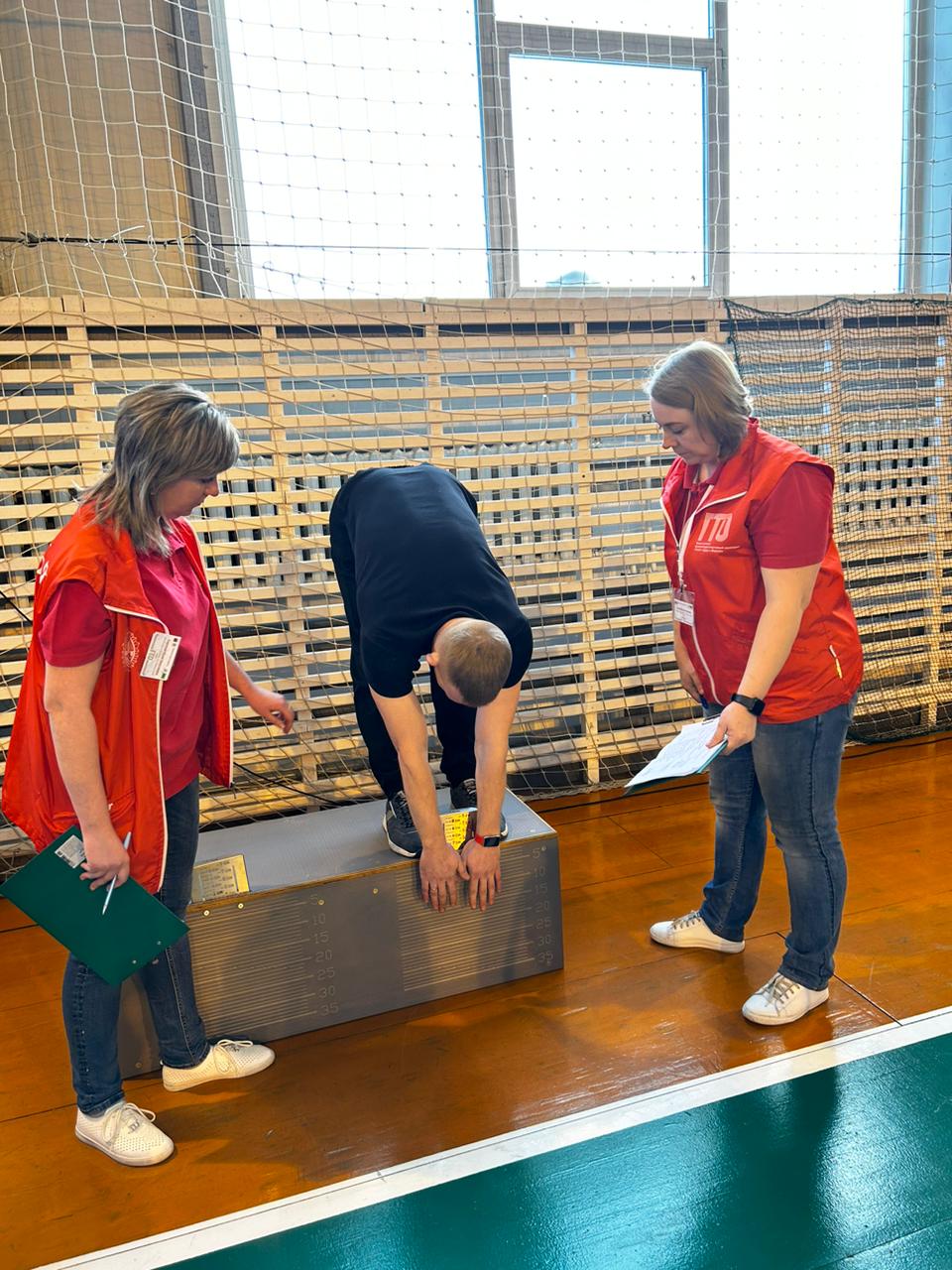 Участники выполнили такие испытания комплекса ГТО как: подтягивание из виса на высокой перекладине, сгибание и разгибание рук в упоре лежа на полу, наклон вперед из положения стоя на гимнастической скамье, прыжок в длину с места толчком двумя ногами, поднимание туловища из положения лежа на спине.