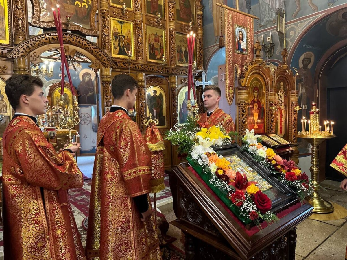 Затем архипастырь обратился к молящимся со словом, в котором поздравил присутствующих с престольным праздником.
