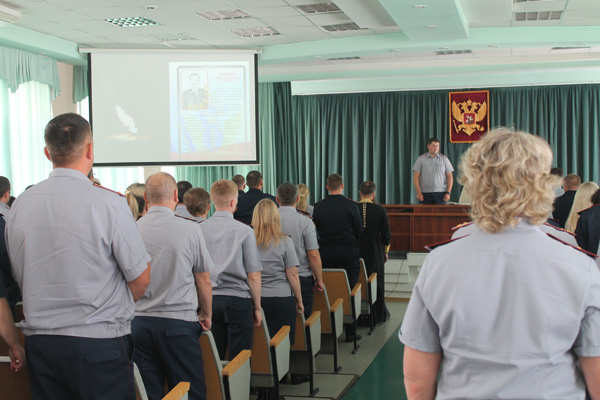В актовом зале ГУФСИН помощник начальника ГУФСИН Глеб Курлюта провел молебен, был продемонстрирован ролик с именами трагически погибших сотрудников.