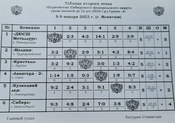 С 5 по 9 января текущего года в городе Искитим состоялся второй этап Первенства Сибирского Федерального округа среди юношей 2011 года рождения.
