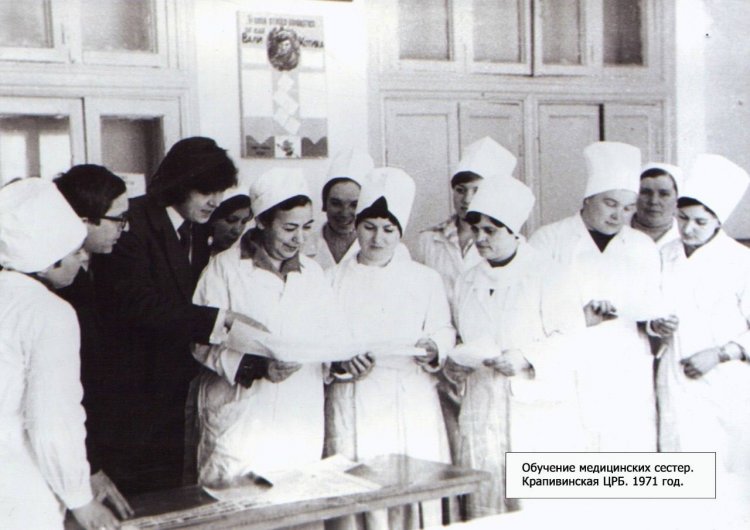 В 1957 году была открыта первая районная аптека. В этом же году в посёлке Крапивинском, на берегу реки Томь было построено новое здание для родильного и хирургического отделений на 60 коек.