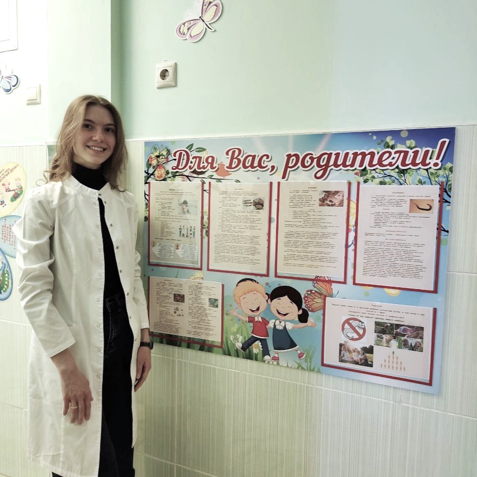 Будущими врачами проведены санитарно-просветительские беседы о распространённых и часто регистрируемых паразитозах у детского и взрослого населения со школьниками 8-11 классов и дошкольниками в образовательных учреждениях Новокузнецка, Прокопьевска и Кемерова. Участники команды рассказали о соблюдении мер личной профилактики против паразитозов, подготовили информационные стенды и брошюры.