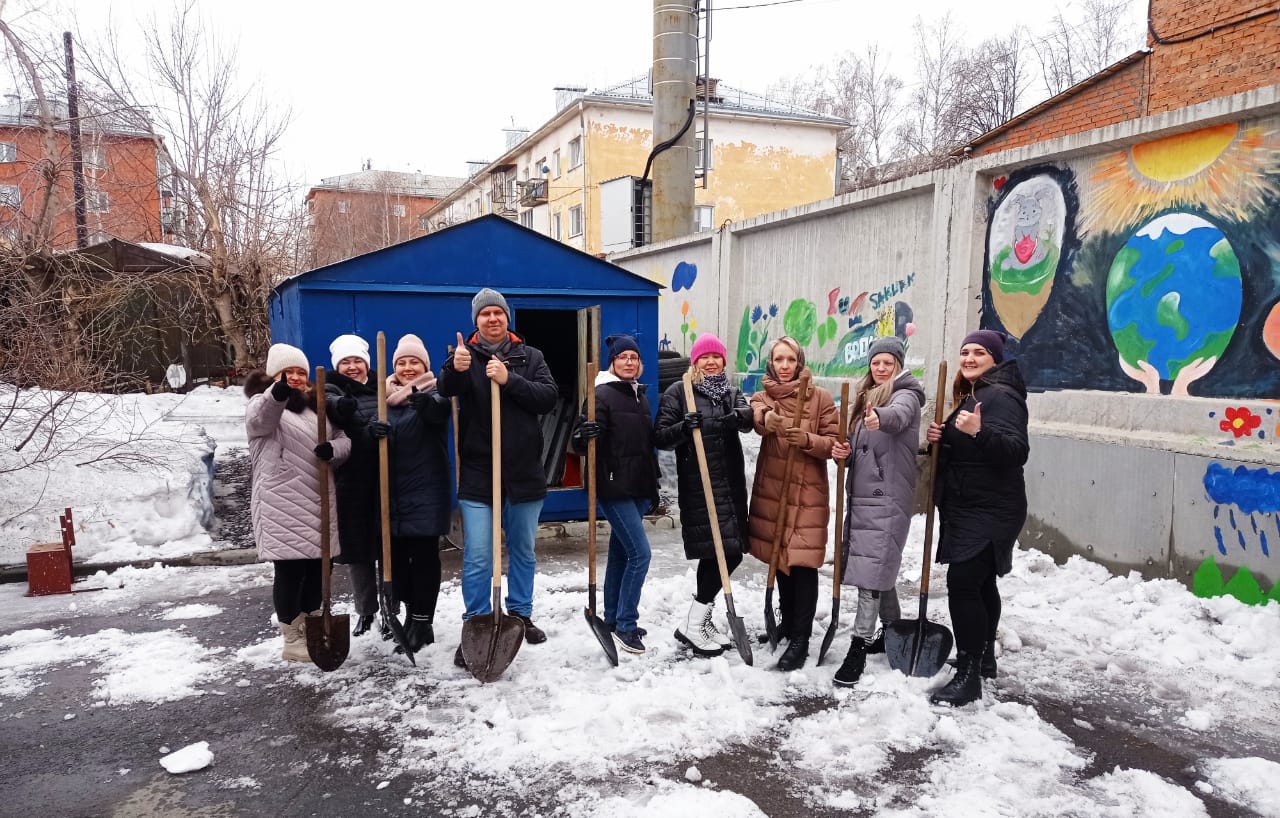 Сотрудники обеих кемеровских поликлиник и стационара ворошили снег и долбили лед во дворах своих учреждений.