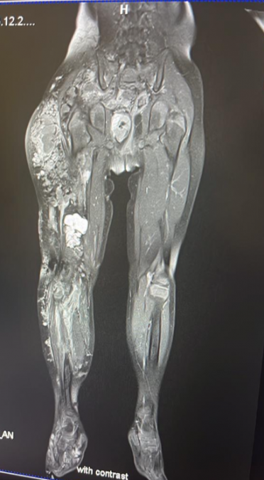 См. такжеДанный случай считается сложным, так как сосудистая аномалия распространялась из полости малого таза на протяжении всей нижней конечности до стопы. С помощью нового современного МРТ-аппарата специалисты провели МР-исследование малого таза и нижних конечностей за одно сканирование с мультипланарной реконструкцией, также сделали МР-ангиографию с контрастированием.