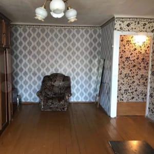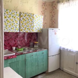 Квартира в обычном состоянии, в наличии кухонный гарнитур , шкаф, кресло, электроплита, холодильник.