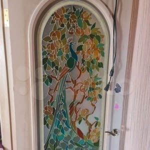 Большаяя спальня, детская и зал. Двери из натурального дерева с настоящими витражами.